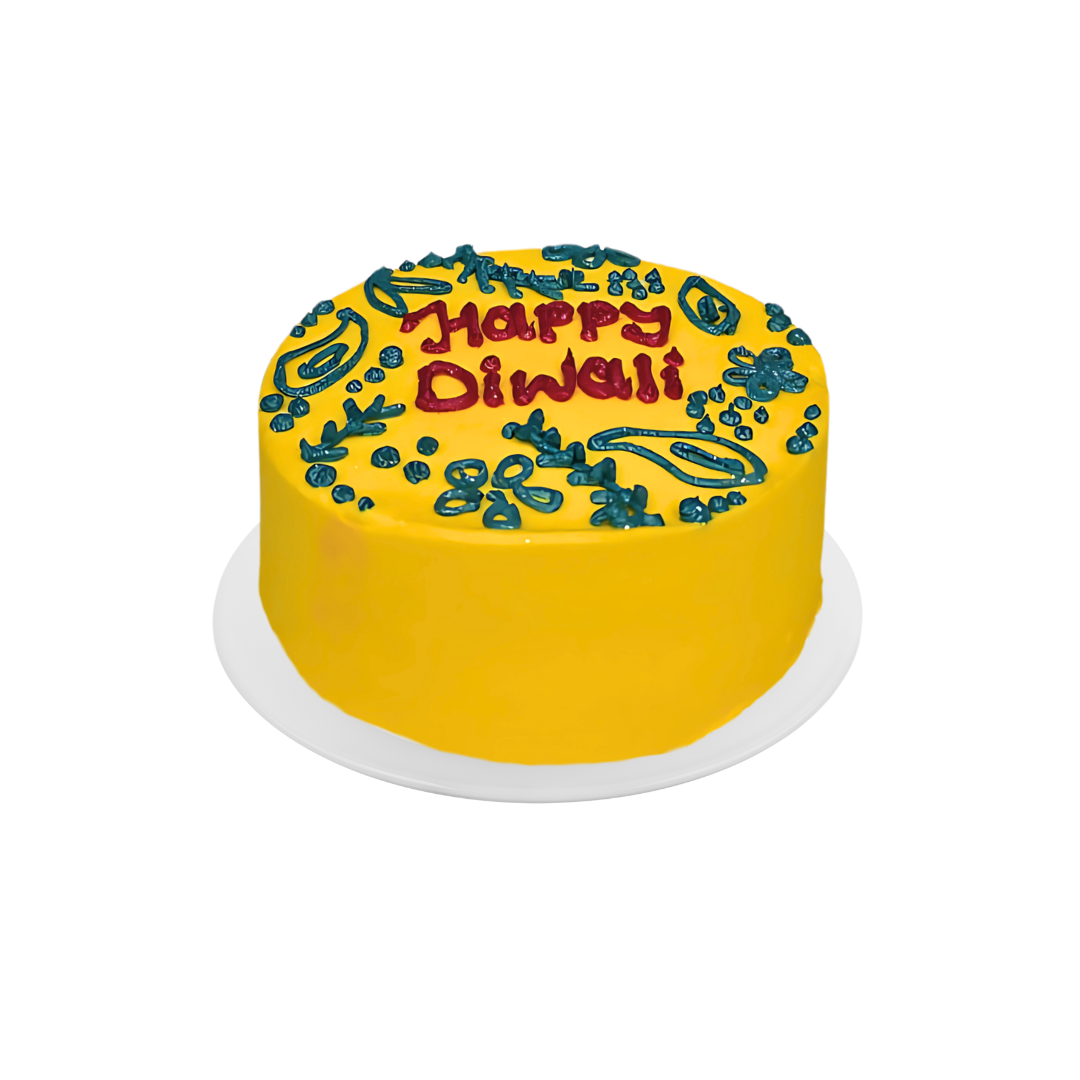 Celebrate Diwali in style with our limited‑edition Diwali Cake, crafted to delight the eyes and tantalise the taste buds. Inspired by the Festival of Lights, this cake features a radiant yellow glaze and artful, traditional designs finished with a hand‑piped “Happy Diwali” message.