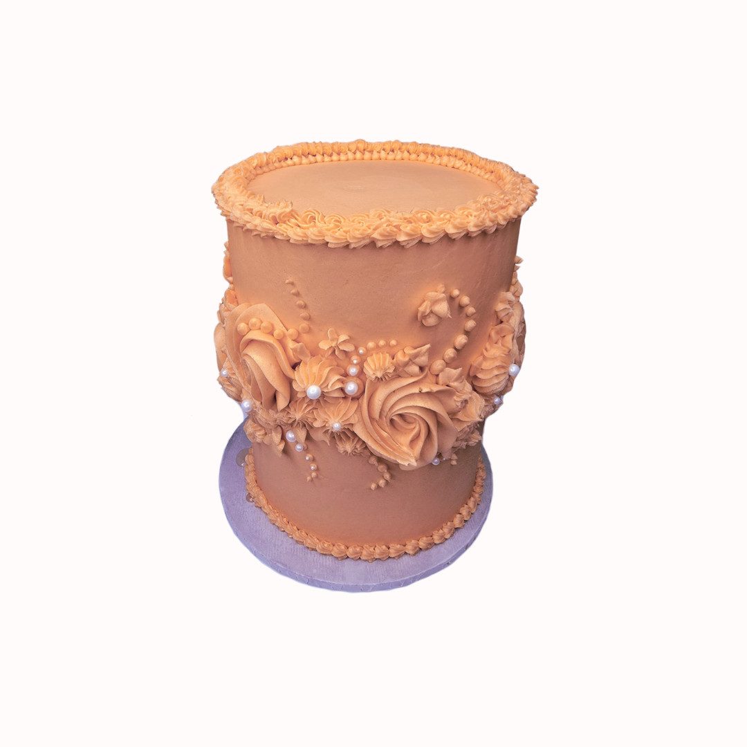 Delicate, detailed, and undeniably stunning, our Elegant Peach Cake is crafted for those who love a touch of vintage charm with a modern twist. Decorated with handcrafted peach-toned florals, intricate piping, and soft pearl accents, this cake is a visual and flavourful masterpiece.