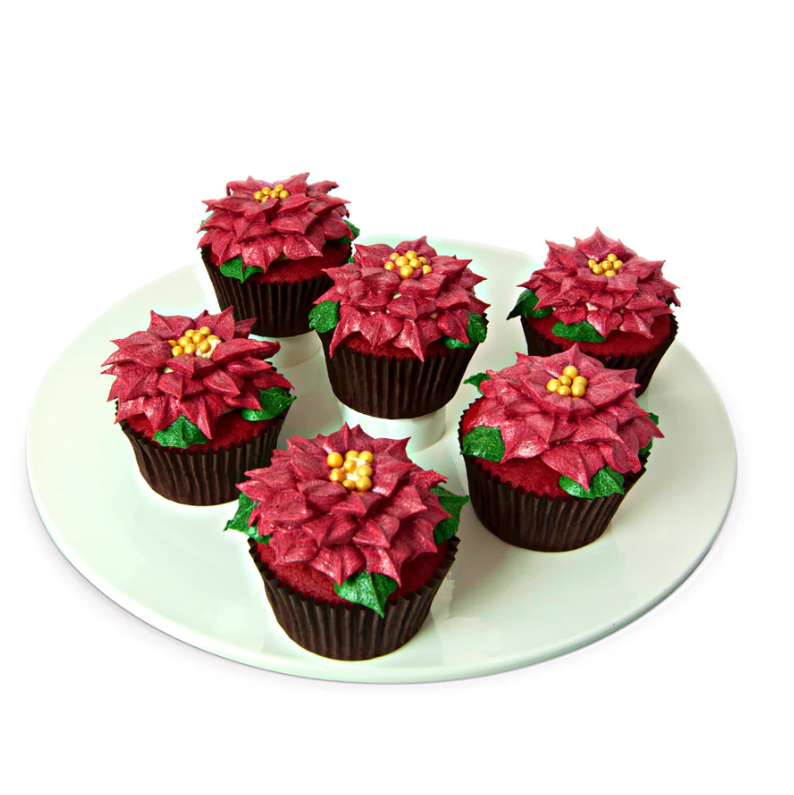 The very finest cupcakes decorated as shown using only buttercream and detailed skill to create these life-like poinsettias!